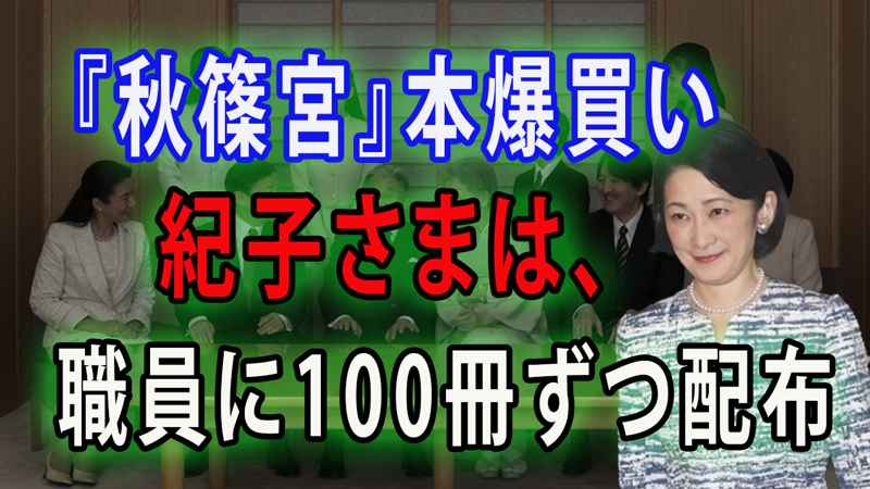 『秋篠宮』本爆買い ! 紀子さまは、職員に100冊ずつ配布 !
