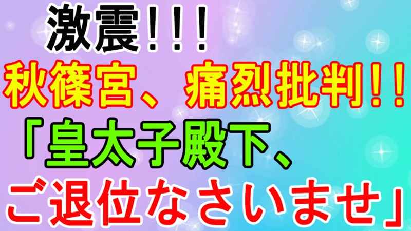 激震!!! 秋篠宮、痛烈批判!!! 「皇太子殿下、 ご退位なさいませ」