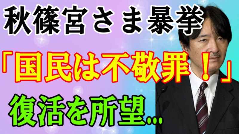 秋篠宮さま暴挙 「国民は不敬罪!」 復活を所望…
