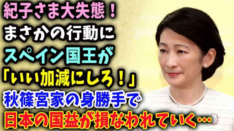 紀子さま大失態!まさかの行動にスペイン国王が「いい加減にしろ!」秋篠宮家の身勝手で日本の国益が損なわれていく…記事の一部を引用してお伝えします。