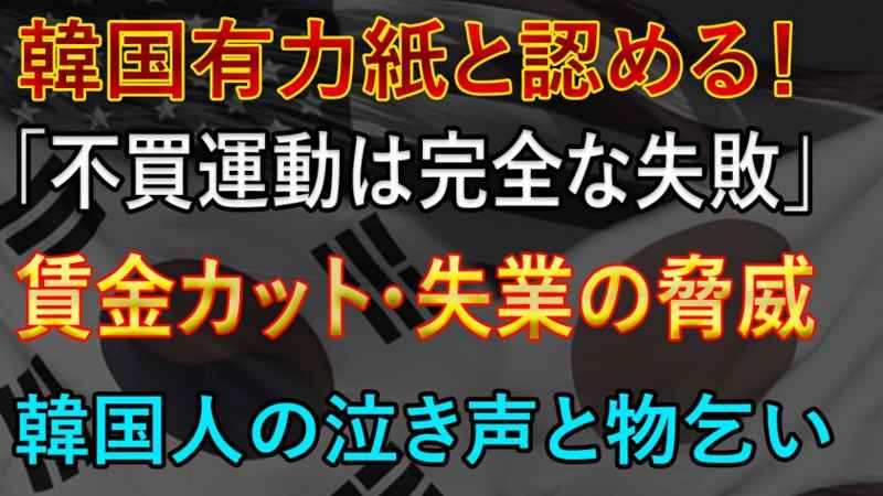 韓国有力紙と認める! 「不買運動は完全な失敗」 賃金カット・失業の脅威 韓国人の泣き声と物乞い